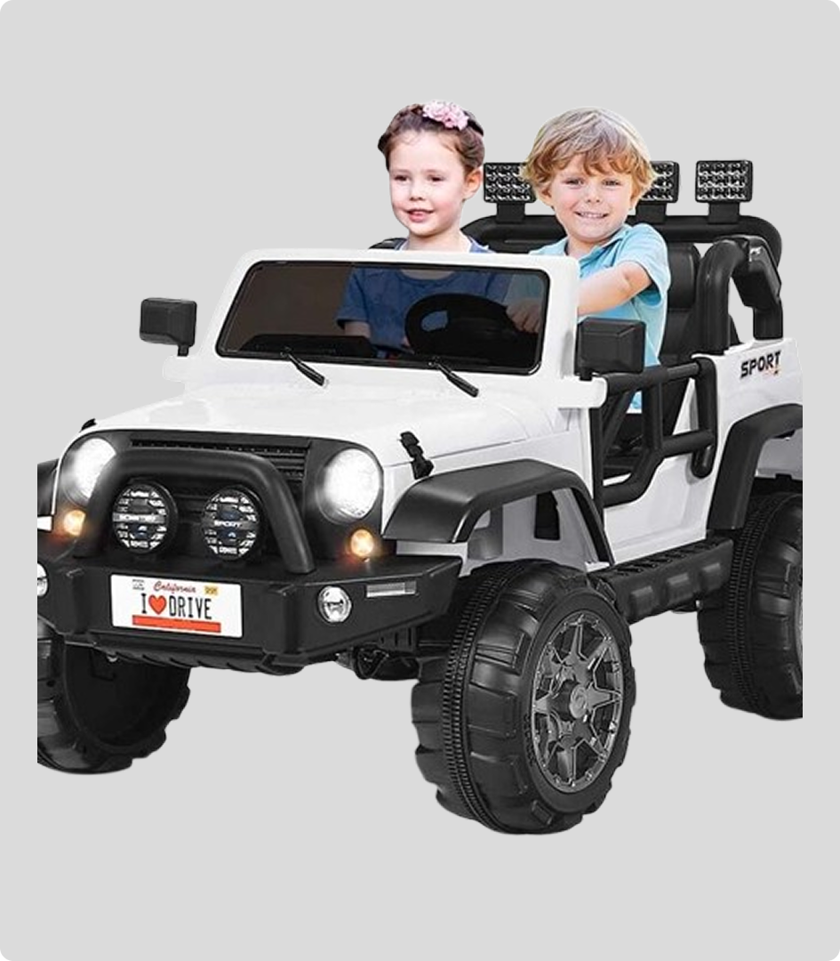 Największy hit wśród aut na akumulator – prawdziwy 2-osobowy jeep terenowy truck, w którym wygodnie zmieszczą się rodzeństwo lub najlepszy przyjaciel! Idealny dla dzieci, które chcą jeździć razem i czuć się jak w prawdziwym samochodzie.